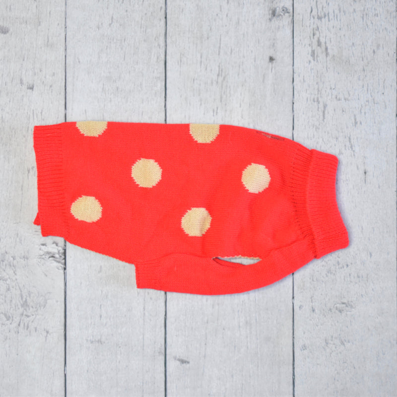 This is the Festive Holiday Sweater! Simply remove the inside tag, and it becomes reversible. Don’t forget the adorable matching scarf—it’s the perfect vintage ski sweater! With red being the "it" color in fashion right now, make sure your pups add this stylish piece to their collection!