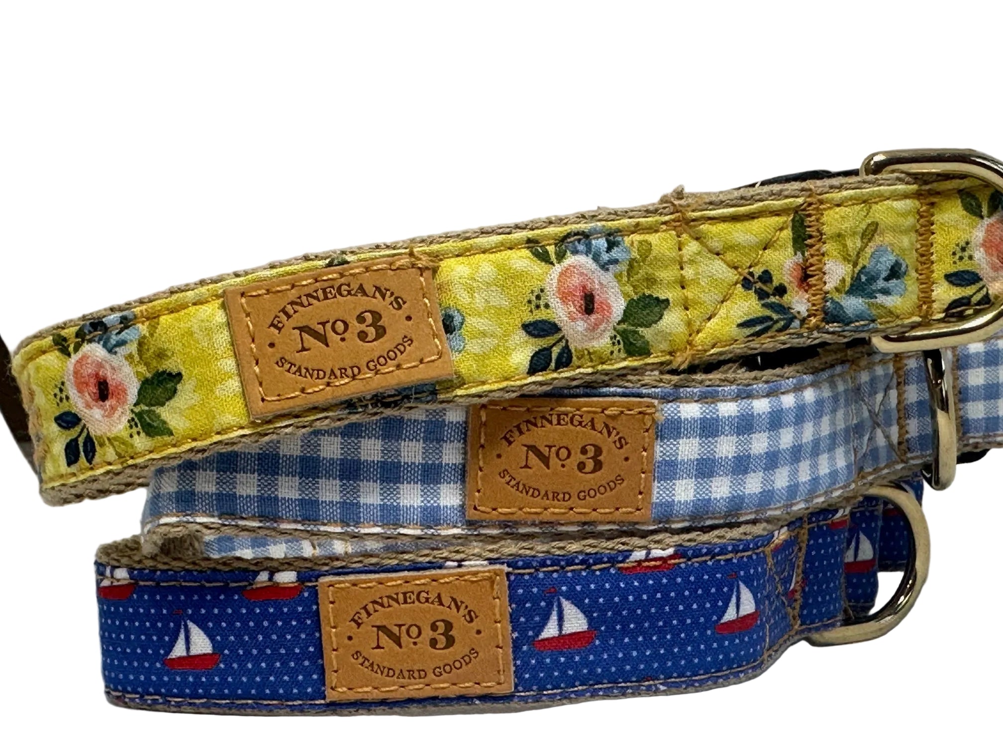 All of our accessories are crafted from lightweight, soft cotton webbing. We use a variety of fabrics sourced from around the globe, paired with solid brass fittings and adjustable collars. Every product is handmade and assembled in San Francisco, California. This lead is a fantastic addition to any collection, and all of our leads measure 5 feet in length.