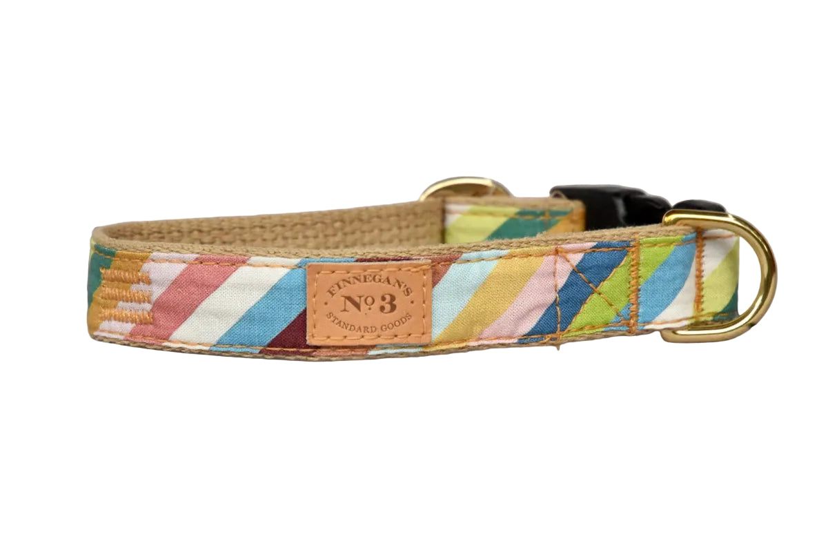 All of our accessories are made on lightweight soft cotton webbing. We use different fabrications, sourced from all over the world, accompanied by solid brass fittings and an adjustable collar. All of our products are handmade and assembled in San Francisco, California. This is a great lead to add to your collection! All our leads are 5 feet long.