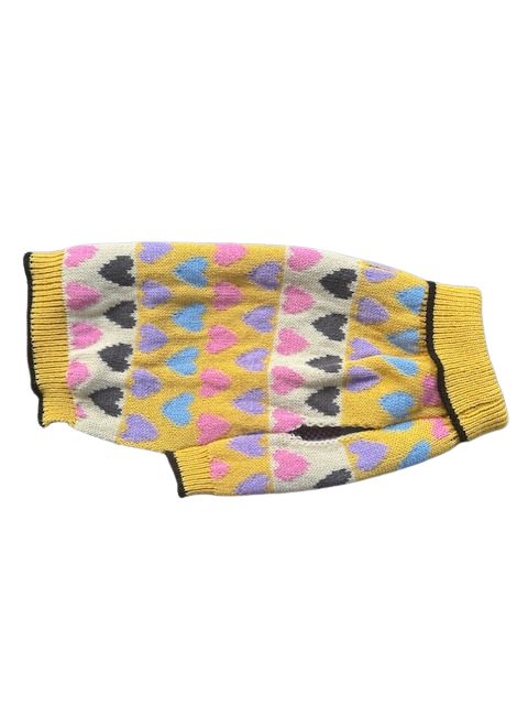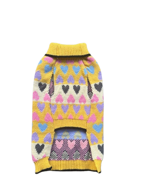 Butter Valentine is a soft, sunshine - yellow knit sprinkled with pastel hearts, sweet, playful and effortlessly chi. Designed for cozy days and love-filled strolls, it's a warm hug your pup can wear
