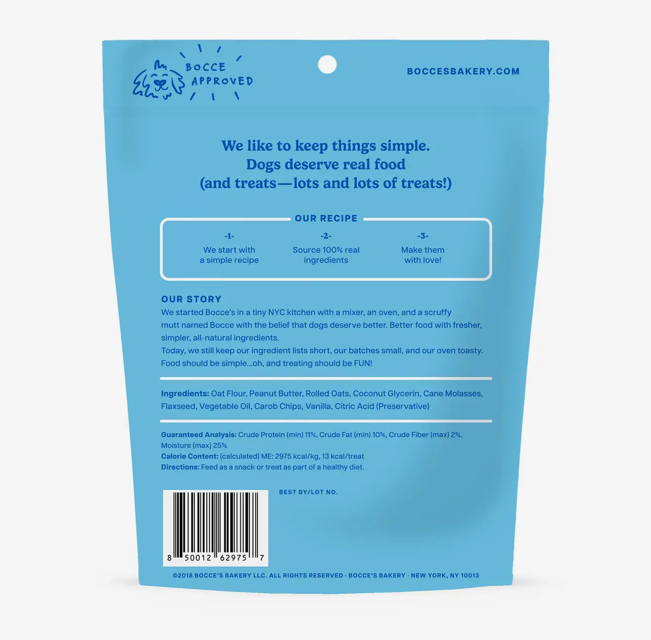 Ingredients: Oat Flour, Peanut Butter, Rolled Oatts, Coconut Glycerin, Molasses, Flaxseed, Vegetable Oil, Carob Chips, Vanilla, Citric