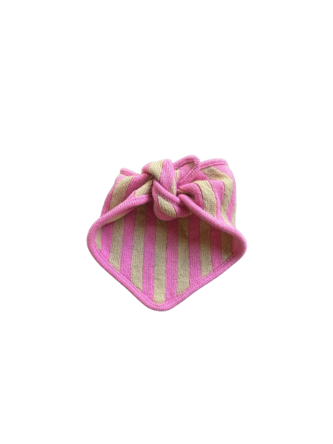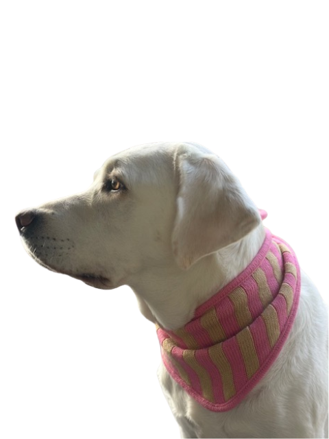 This bespoke knit scarf is a sweet as a piece of saltwater taffy! Tie around your pups neck this Valentine's day! This bandana is the perfect accessory for you pup Designed as one size fits most (pups from 12-70 lbs), it adds a charming touch to any outfit. Try it on yourself too—it's got the ultimate knit scarf vibe for both man and his best friend.